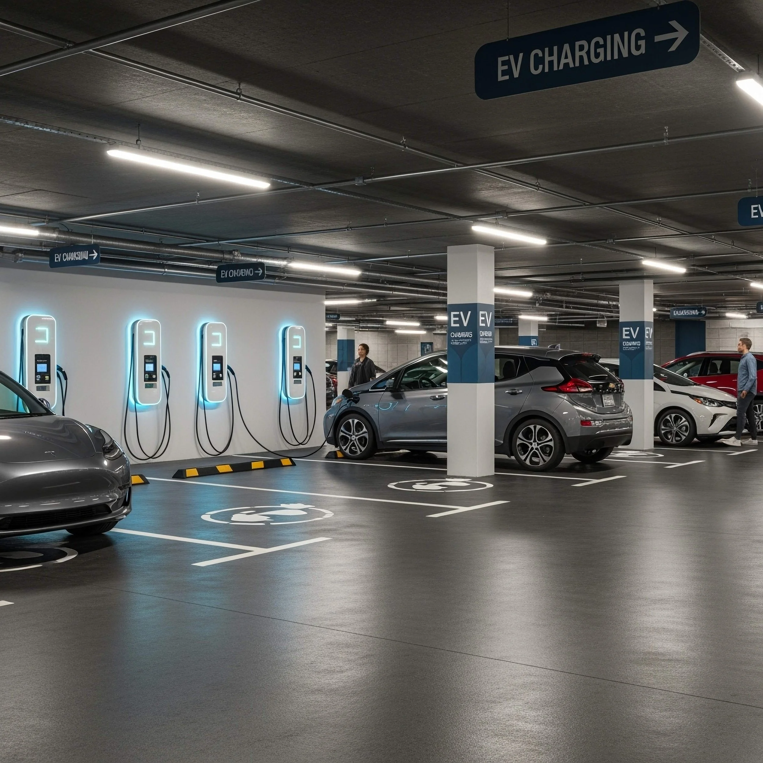 Shared charging stations: A smaller number of chargers are installed in designated visitor or common parking stalls, available on a first-come, first-served or reservation basis. This works for buildings where not every resident needs a dedicated charger yet.